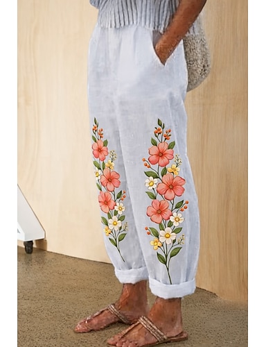 Damen Weites Bein Chinos Urlaub Vintage Lässig Volle Länge Hohe Taille Blumen Grafik Elastischer Bund Unelastisch Lässig Täglich Blau Rosa Rote Sommer Frühling Lässiger Schnitt