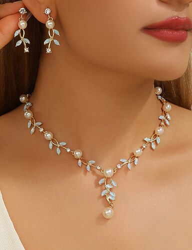Brautschmuck-Sets 2 Zirkon Imitationsperle Strass 1 Halskette Ohrringe Damen Elegant Stilvoll Einfach Niedlich Perlen Blattform Schmetterling Unregelmäßig Schmuck-Set Für Hochzeit Party