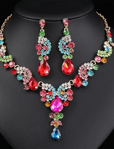 Brautschmuck-Sets 1 Set Zirkon Strass 1 Halskette Ohrringe Damen Mode Luxus Bunt Niedlich Schick Blumenform Diamant Wassertropfen Schmuck-Set Für Hochzeit Party Party-Abendmode