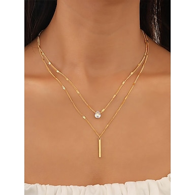 Exquisite, doppellagige Halskette in Goldton mit Wassertropfen-Anhänger für Damen, eleganter und schlichter Stil, geeignet für modebewusste Frauen zum Tragen bei legeren Anlässen und Partys