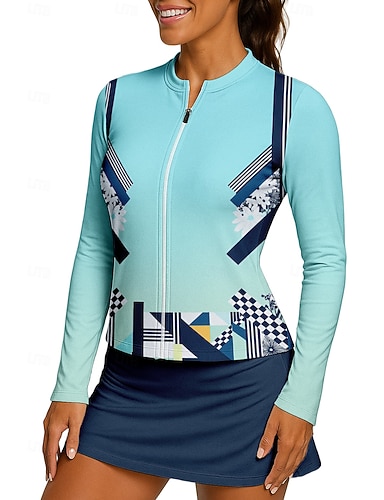 Damen Golf-Poloshirt Tennis Shirt Tennis-Sweatshirt Langarm Druck Viertel Postleitzahl Pullover UV Schutz Elastisch Atmungsaktiv Tennis Golfspiel Pickleball Stehkragen Reißverschlusskragen Hemd