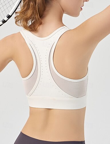 Damen Einfarbig Tennis-BH Ärmellos Netz Frontreißverschluss Stoßfest Feuchtigkeitsableitend Atmungsaktiv Tennis Golfspiel Joggen Runden Schwarz Weiß Gelb Tennisbekleidung