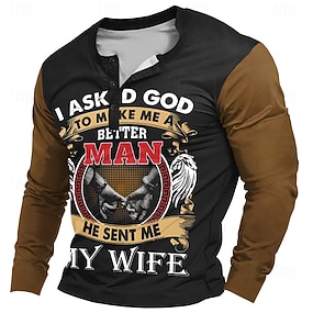 Herren Grafik Buchstabe Henley Hemd Langarm 3D-Druck Mode Täglich Lässig Lässig Ferien Ausgehen Frühling & Herbst Schwarz Braun Armeegrün Dunkelblau Henley Henley T-Shirt