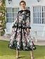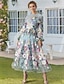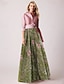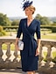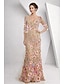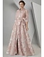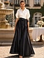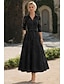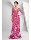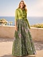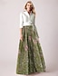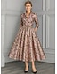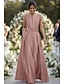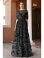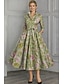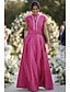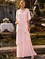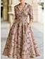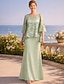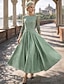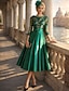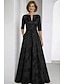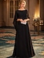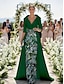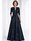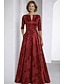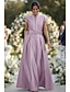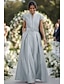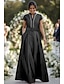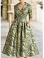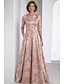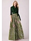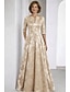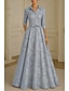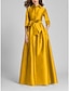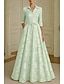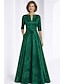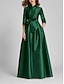 A-Linie Schlauchkleid Bodenlang Perlenbestickt Kleid für Hochzeitsgäste Abendkleid Brautmutterkleid Dreiviertelarm V Ausschnitt Hemdkragen Elegant Vintage luxuriös Formell Satin mit Applikationen