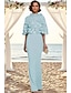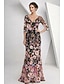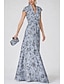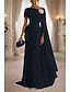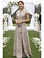 Schlauchkleid Bodenlang Abschlussballkleid Perlenbestickt Partykleid Brautmutterkleid Kurzarm Rundhalsausschnitt Elegant Vintage luxuriös Formeller Abend Hochzeitsfeier mit Perlenstickerei