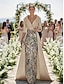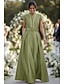 A-Linie Bodenlang Perlenbestickt Kleid für Hochzeitsgäste Abendkleid Brautmutterkleid Langarm Hemdkragen Elegant Vintage Hoher Schlitz Formell Hochzeitsgast Satin mit Glitzer Schlitz