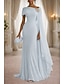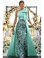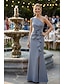 A-Linie Schlauchkleid Bodenlang Perlenbestickt Kleid für Hochzeitsgäste Abendkleid Brautmutterkleid Ärmellos Ein-Schulter Elegant Vintage luxuriös Formell Satin mit Schleife(n) Applikationen