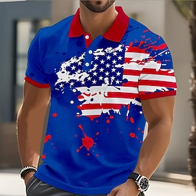 4. Juli 2026 250. Herren Amerikanische Flagge Veteranen Poloshirts Golfshirt Kurzarm Polo-Shirts Hemden mit Kragen Streetwear Urlaubskleidung Party-Outfits 3D-Druck Knöpfe Frühling & Sommer Blau Weiß