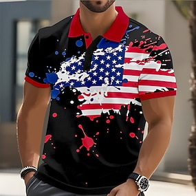 4. Juli 2026 250. Herren Amerikanische US-Flagge Golf Sport-Poloshirts Kurzarm Polo-Shirts Hemden mit Kragen Lässig Athleisure Knöpfe Sommer Frühling Blau Schwarz 3 Schwarz 1