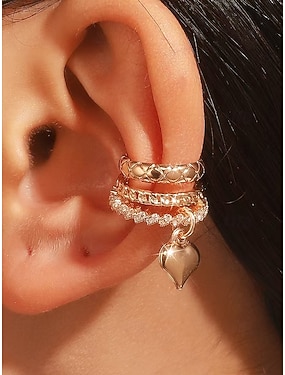 Verstellbares Ohrclip-Set mit Herzanhänger für Damen, Ohrklemmen aus gold- und silberfarbener Legierung, modischer Schmuck ohne Piercing – perfekt für Valentinstag und als Geschenk.