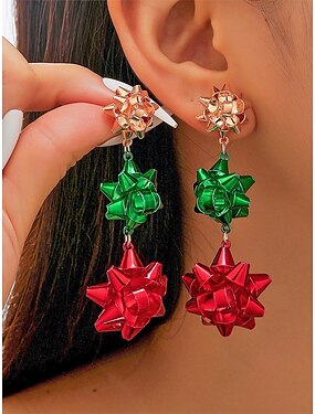 Weihnachtsohrringe mit Schleife für Damen, festliches rot-grünes Design aus Legierungsmaterial, perfekt für Feiertagspartys und zum Verschenken