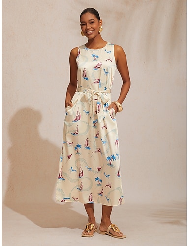 Urlaubs-Maxikleid aus Satin mit Meeresmotiven