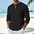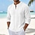 Herren Hemd Leinenhemd Sommerhemd Strandhemd Einfarbig Lässig Urlaub Blau Schwarz Weiß Khaki Langarm Mandarinkragen Sommer Bekleidung Gerafft