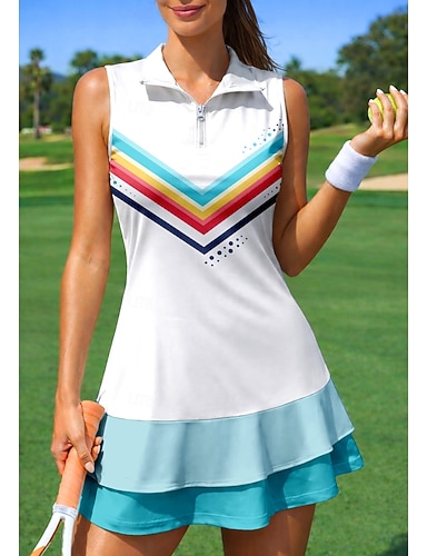 Damen Geometrisch Streifen Tenniskleid Sportkleid Tennis Polo Kleid Ärmellos Reißverschluss Viertel Postleitzahl Elastisch Schweißableitend Atmungsaktiv Volleyball Tennis Golfspiel Kragen Umlegekragen
