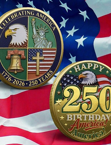 Gedenkmünze zum 250. Jahrestag der USA, patriotische Sammlermünze, Adler &Freiheit &Flaggenmotiv, Erinnerungsmünze, robustes Metall, historisches Souvenir zur Dekoration &Sammlung,
