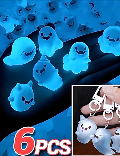 6 leuchtende Geister-Schlüsselanhänger, niedliche Kawaii-Mini-Cartoon-Geister aus Kunstharz für Rucksäcke, Taschen, Halloween-Partys, Geschenke für Kinder und Erwachsene