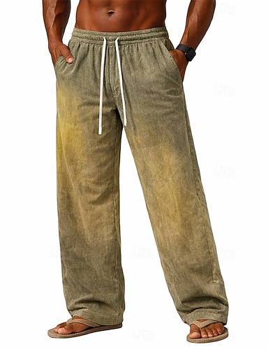 Herren Leinenhosen Hose Freizeithose Sommerhose Kordelzug Elastischer Bund Einfach Komfort Atmungsaktiv Volle Länge Lässig Täglich Outdoor Urlaub Mode Blau Schwarz Unelastisch