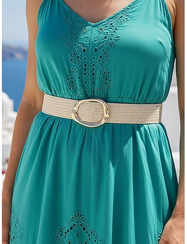 Damen-Strohgürtel im Boho-Stil, elastischer, verstellbarer Bund, in verschiedenen Farben erhältlich, perfekt für Strandurlaub, Freizeitkleidung und Sommeroutfits.