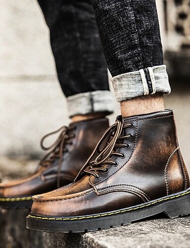Burgunderrote Arbeitsstiefel aus Leder für Herren, lässige Vintage-Kampfstiefeletten mit Knöchelriemen, strapazierfähiger Outdoor- &Schuhe für den täglichen Gebrauch
