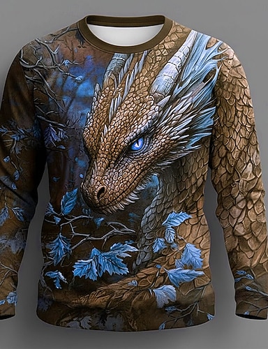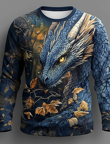 Herren-T-Shirt mit einfarbigem Entenmotiv, langärmelig, 3D-Druck, Rundhalsausschnitt, lustig, lässig, für Alltag und Freizeit, in Blau, Schwarz und Gelb, Frühling/Herbst, Größen: S, M, L, XL, 2XL, 3XL