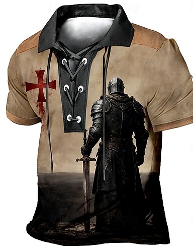 Herren Tempelritter Poloshirts Kurzarm Polo-Shirts Revers Vintage Lässig Streetwear Alltagskleidung 3D-Druck Atmungsaktives Gewebe Frühling & Sommer Braun