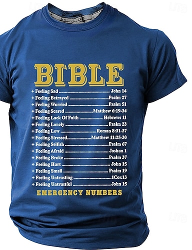 Herren-T-Shirt mit Bibelversen und Notrufnummern, christlichem Motiv, regulärer Passform, religiöser Inspiration, Designer-Kleidung, Größen S, M, L, XL, XXL, XXXL