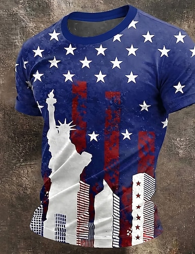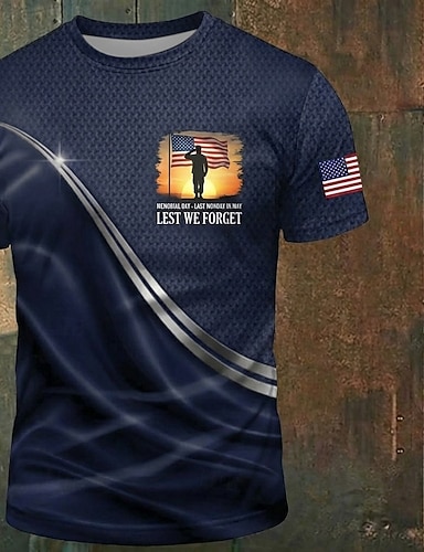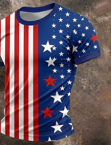 4. Juli 2026 250. Herren Einfarbig Amerikanische US-Flagge T Shirt Kurzarm T-Shirt 3D-Druck Rundhalsausschnitt Hemd Vintage-Retro Patriotisch Täglich Festival Blau Schwarz Burgunderrot Sommer Frühling