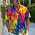 Herren Bunt Pop Art Abstraktes Graffiti Hemd Sommerhemd Knopfhemd Kurzarm Modisch lässig Outdoor Ferien Sommer Frühling Umlegekragen 3D-Druck Hemden mit Kragen Purpur Rosenrot
