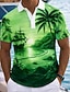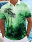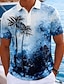 Herren Palme Hawaiianische Polohemden Kurzarm Polo-Shirts Revers Lässig Athleisure Alltagskleidung Urlaubskleidung 3D-Druck Knöpfe Atmungsaktives Gewebe Frühling & Sommer Blau Braun Grün