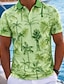 Herren Palme Hawaiianische Polohemden Kurzarm Polo-Shirts Hemden mit Kragen Lässig Athleisure Alltagskleidung Urlaubskleidung 3D-Druck Knöpfe Atmungsaktives Gewebe Frühling & Sommer Blau Purpur Grün