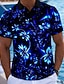 Herren Blumen Hawaiianische Polohemden Kurzarm Polo-Shirts Revers Lässig Resort Athleisure Urlaubskleidung 3D-Druck Knöpfe Frühling & Sommer Blau Marineblau Purpur