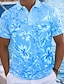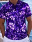 Herren Pflanzen Hawaiianische Polohemden Kurzarm Polo-Shirts Hemden mit Kragen Lässig Athleisure Alltagskleidung Urlaubskleidung 3D-Druck Knöpfe Atmungsaktives Gewebe Frühling & Sommer Blau Purpur