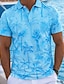 Herren Palme 100% Baumwolle Acid-Wash-Shirt Kurzarm Polo-Shirts Hemden mit Kragen Hawaiianisch Lässig Outdoor Ferien Urlaubskleidung 3D-Druck Knöpfe Frühling & Sommer Blau Rosa Purpur