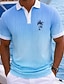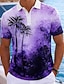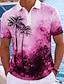 Herren Palme Hawaiianische Polohemden Kurzarm Polo-Shirts Hemden mit Kragen Lässig Athleisure Urlaubskleidung 3D-Druck Knöpfe Atmungsaktives Gewebe Frühling & Sommer Blau Rosa Purpur