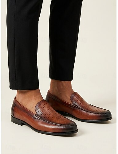 Hellbraune Herren-Slipper aus Leder mit schwarzen Details, lässige und dennoch elegante Hochzeitsschuhe, ideal für Hochzeitsgäste und Bräutigam