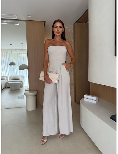 Damen Overall Gewöhnlich Einfarbig Ärmellos Ärmellos Weites Bein Trägerlos Rückenfrei Tasche Täglich Normale Passform Schwarz Weiß Grün Sommer