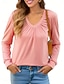 Damen T-Shirt Einfarbig Stilvoll Lässig Langarm V-Ausschnitt Regelmäßige Oberteile Täglich Rüschen Schwarz Rot Orange Aprikose Grau Frühling Herbst Winter