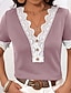 Damen Tunika Elegante Oberteile Spitze Einfach Mode Kurzarm V Ausschnitt Normale Oberteile Täglich Urlaub Rosa Fuchsie Khaki Sommer