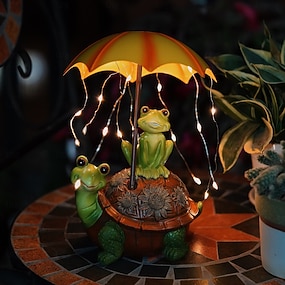 1 Stück wasserdichte Solar-Schildkröte mit Regenschirm, Frosch-Dekorationslampe für den Außenbereich, Hof, Garten, Park, Rasen, Weg, Harzstatue, Lampe, Landschaftsbeobachtungslichter
