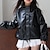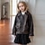 Kinder Jungen Schwarze Lederjacke Jacke Oberbekleidung Einfach Langarm Reißverschluss WASSERDICHT Winddicht Mantel Täglich Mode Lässig Schwarz Frühling Herbst Ab 4 Jahren