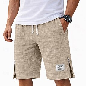 Herren Leinenshorts Sommershorts Strandshorts Kordelzug Tasche Seitenstreifen Farbblock Einheitliche Farbe Komfort Atmungsaktiv Knielang Lässig Täglich Strand Urlaub Mode Blau Khaki Unelastisch