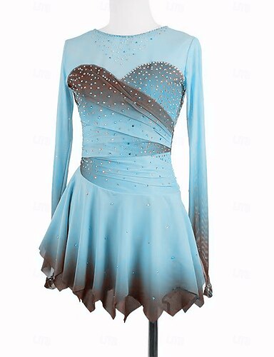 Eiskunstlaufkleid Damen Mädchen Eislaufen Kleid Himmelblau Patchwork Asymmetrischer Saum Spandex Hohe Elastizität Training Professionell Wettbewerb Eiskunstlaufkleidung Klassisch Kristall / Strass