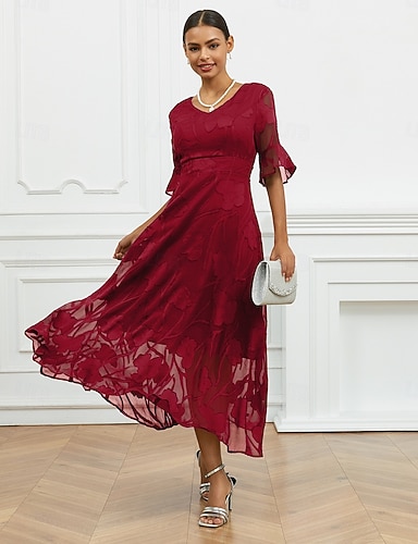 Damen Maxikleid Cocktailkleid Kleid für Hochzeitsgäste Halbformelles Kleid A Linie Kleid Elegant Arbeit Geburtstag Flattrige Ärmel Hochzeitsgast Cocktailparty Formeller Abend Normale Passform