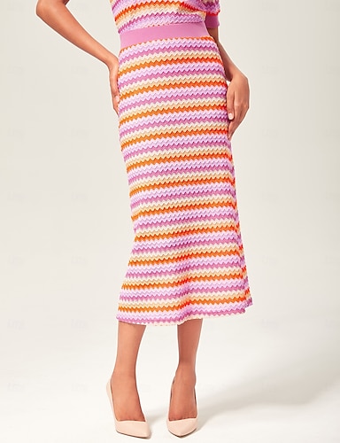 Damen Elegant Midi Hohe Taille Röcke Unelastisch Schwarz Sommer Chiffon