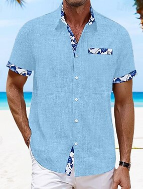 Herren Hemd Leinenhemd Sommerhemd Strandbekleidung Knopfhemd Einfarbig Urlaub Lässig Weiß Blau Khaki Grau Kurzarm Umlegekragen Frühling & Sommer Bekleidung Tasche