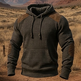 Herren Kapuzensweatshirt Waffle Kapuzensweatshirt Pullover Kapuzensweatshirt Braun Mit Kapuze Einfach Patchwork Farbblock Strukturiert Lässig Täglich Sport & Outdoor Vintage Streetwear Cool Frühling