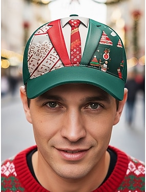 Baseballkappe mit Weihnachtsmann-Aufdruck für Herren, verstellbare rote Schneeflockenmütze, festliches Winteraccessoire für Feiertagspartys und Outdoor-Bekleidung