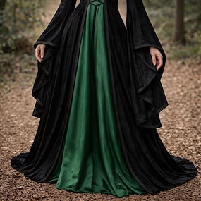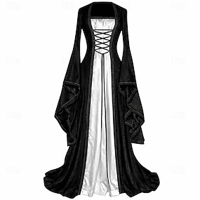 Retro Vintage Mittelalterlich Renaissance Lange Länge Abschlussballkleid Trompetenärmel Hexe Pirat Wikinger Dame Edelfrau Kostüm Damen Keltisch königlich Walpurgisnacht Halloween Karneval Maskerade