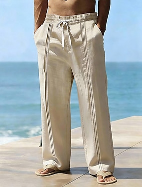 Herren Cargohose Leinenhose Hose Hosen Sommerhosen Strandhose Kordelzug Elastische Taille Gerade geschnitten Glatt Komfort Atmungsaktiv In voller Länge Urlaub Täglich Festtage Hawaiianisch Boho