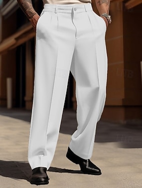 Herren Hose Anzughose Tasche Geschichtet Gerader Schnitt Einfach Komfort Weich Volle Länge Täglich Outdoor Ausgehen Mode Streetwear Weiß Khaki Mikroelastisch